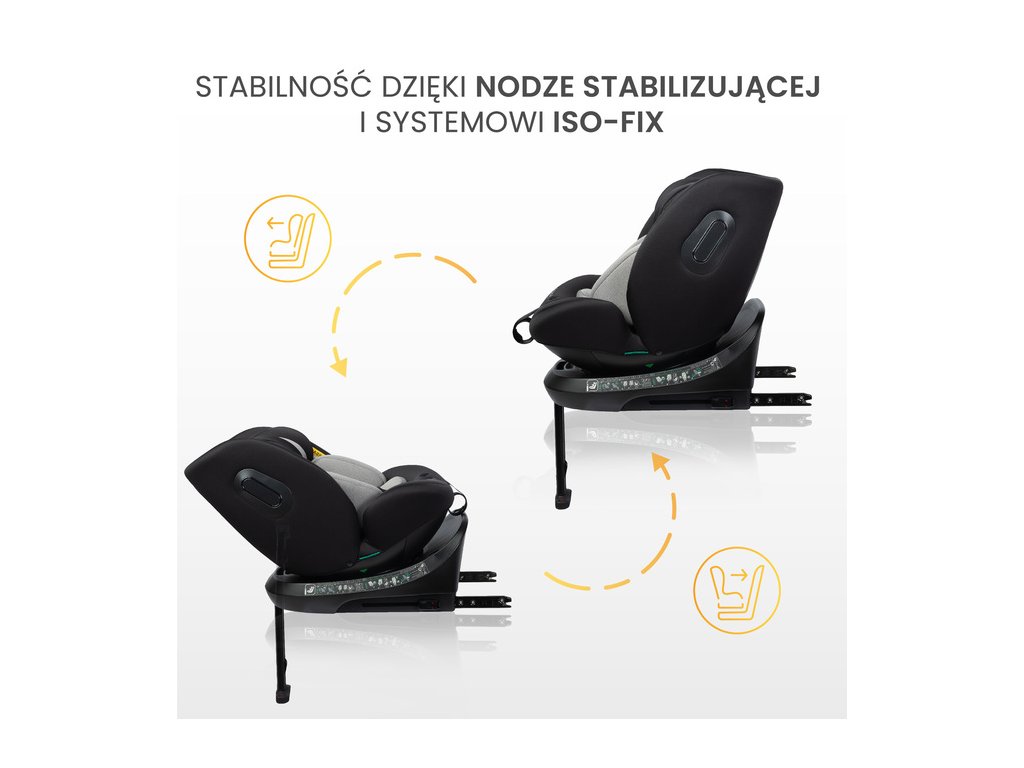 - Jednoduchá inštalácia: Autosedačka sa inštaluje rýchlo a jednoducho pomocou stabilizačnej nohy a systému ISOFIX. Funkcia otáčania o 360 stupňov uľahčuje nastavenie autosedačky smerom dopredu.