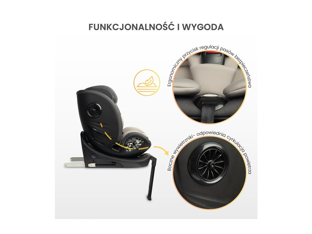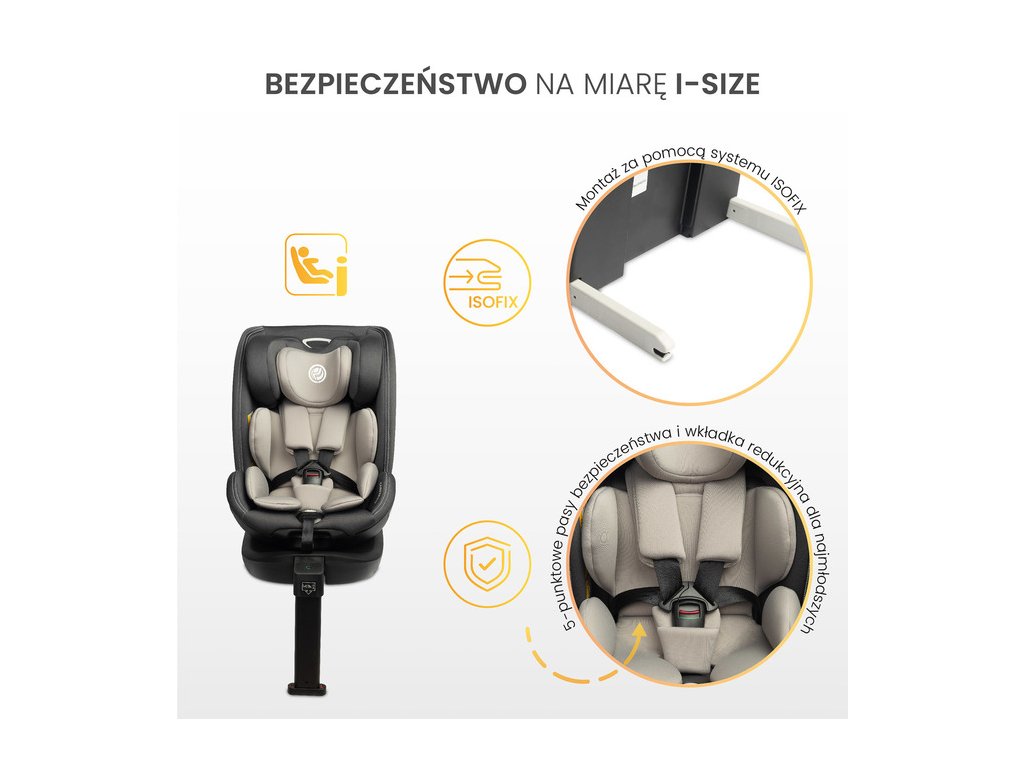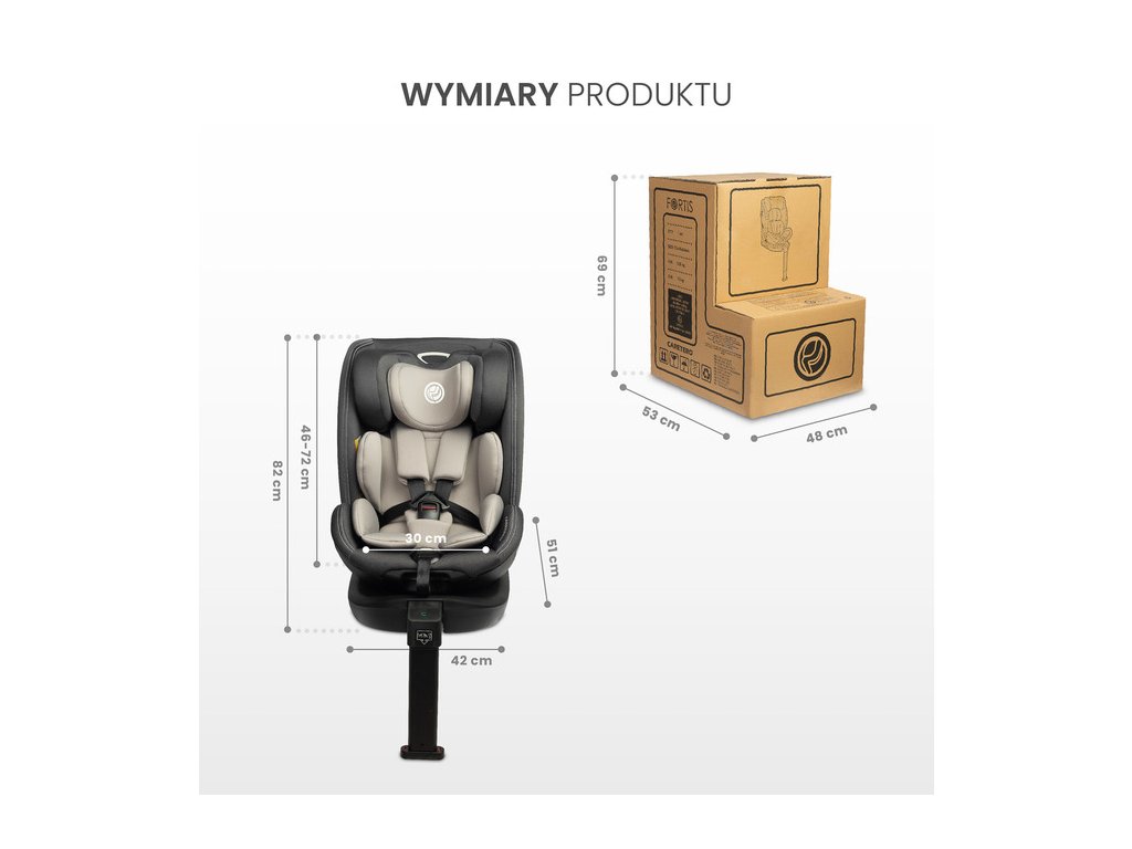 Fortis je autosedačka pre deti s výškou od 40 cm do 150 cm , ktorá poskytne pohodlie od prvých okamihov života dieťaťa. Fortis spĺňa štandardy homologizácie i-Size , čo zaručuje cestovanie s najvyššími bezpečnostnými štandardmi. Je vybavená stabilizačnou nohou a možno ju upevniť v aute pomocou háčikov ISOFIX . Sedačka je vybavená integrovaným tlačidlom, ktoré je tiež zodpovedné za nastavenie sklonu a otáčanie sedačky o 360 stupňov , vďaka čomu môžete svoje dieťa rýchlo a pohodlne ochrániť pred cestou. Sedačka Fortis je prispôsobená potrebám detí od prvých mesiacov života a sprevádza ich, kým už nepotrebujú sedačku. Pohodlie a komfort cestovania sú zabezpečené vďaka ergonomicky navrhnutej vložke. Čalúnenie sedačky je vyrobené z mäkkej polyesterovej tkaniny. Viacstupňové nastavenie opierky hlavy až do 26 cm zaisťuje maximálne pohodlie počas cestovania a sada redukčných vložiek vám pomôže správne umiestniť dieťa do sedačky. Fortis má tiež štvorstupňové nastavenie sklonu, a to v polohe po smere aj proti smeru jazdy, čo umožňuje prispôsobiť sedadlo individuálnym preferenciám a potrebám dieťaťa počas cestovania. Ďalšou výhodou sú bočné vetracie otvory, ktoré pomôžu k správnej cirkulácii vzduchu v blízkosti pokožky dieťaťa.