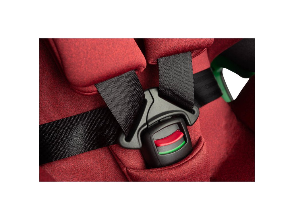 Ergonomické tlačidlo umožňuje rýchle a jednoduché nastavenie bezpečnostného pásu, čím sa eliminuje zbytočná námaha pre rodiča. Bočné vetracie otvory zabezpečujú správnu cirkuláciu vzduchu a zaisťujú pohodlie pokožky dieťaťa.