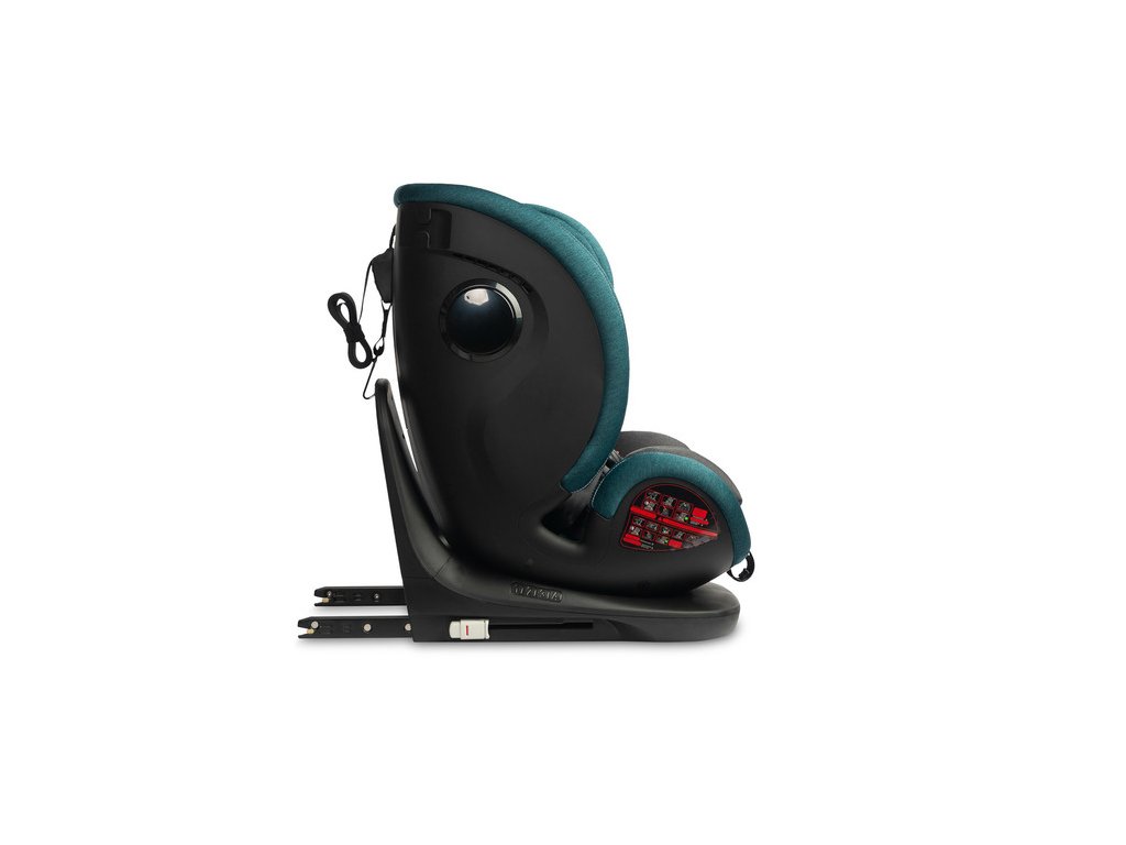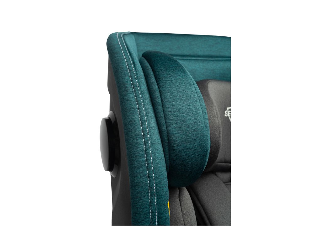Sedadlo má integrované tlačidlo, ktoré ovláda nastavenie sklonu aj 360-stupňové otáčanie, čo umožňuje rýchle a pohodlné zabezpečenie dieťaťa pred cestou. Čalúnenie vyrobené z vysoko kvalitnej polyesterovej tkaniny je príjemné na dotyk a poskytuje dodatočné pohodlie.