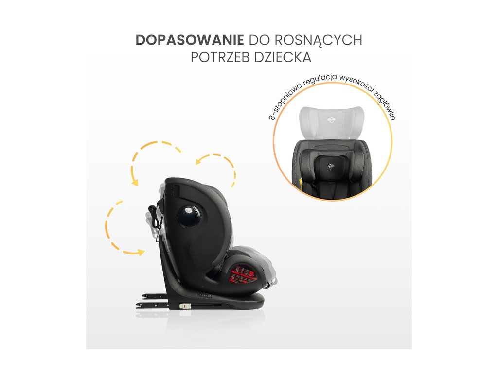 - Nastavenie: 4-stupňové nastavenie sklonu operadla pre jazdu dopredu a rovnaké pre jazdu dozadu Presné nastavenie opierky hlavy až do 24 cm, sedadlo sa otáča o 360 stupňov