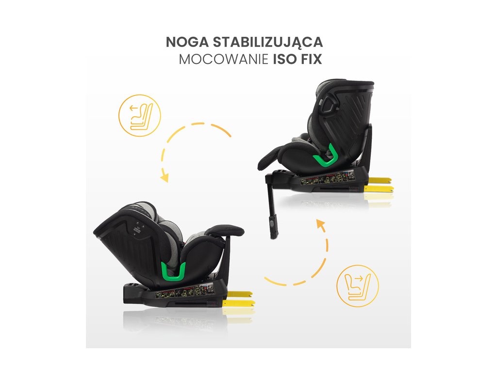 - Inštalácia proti a po smere jazdy: Flexibilné možnosti inštalácie pomocou ISOFIX a stabilizačnej nohy.