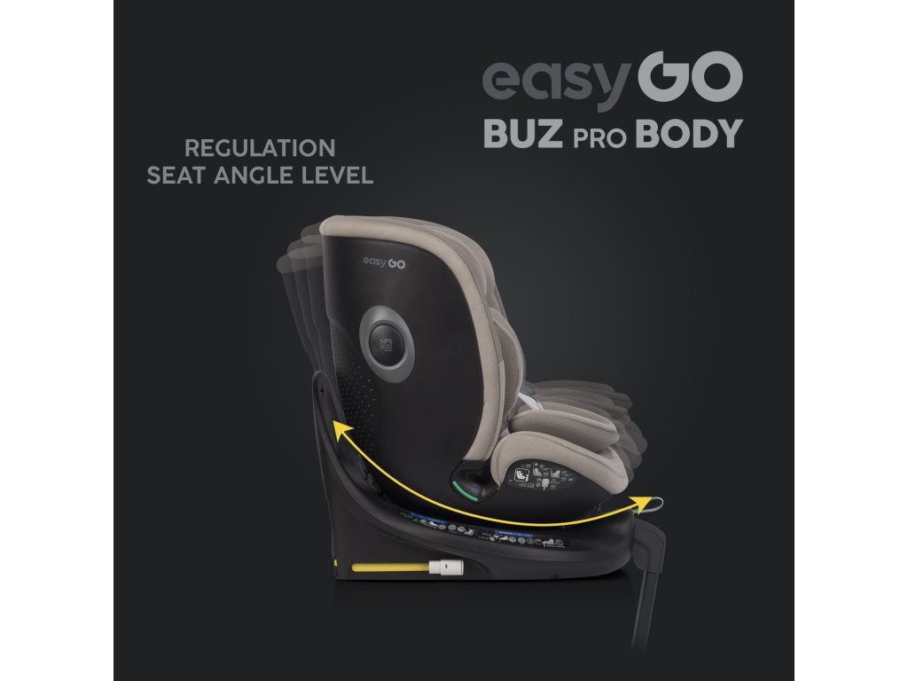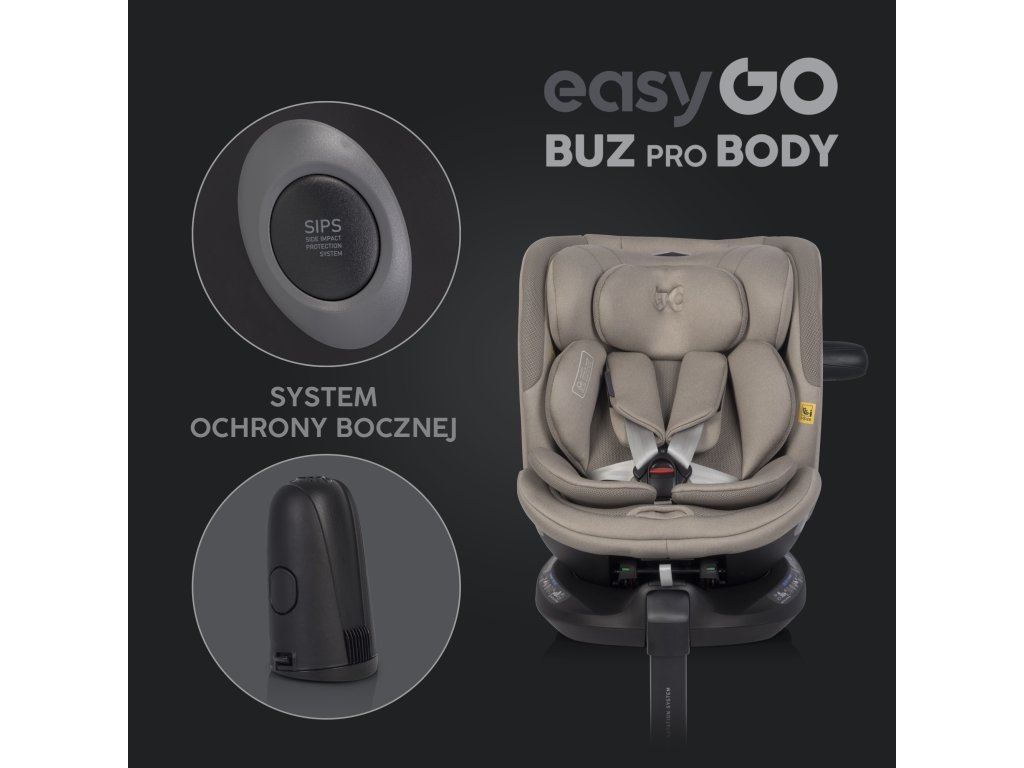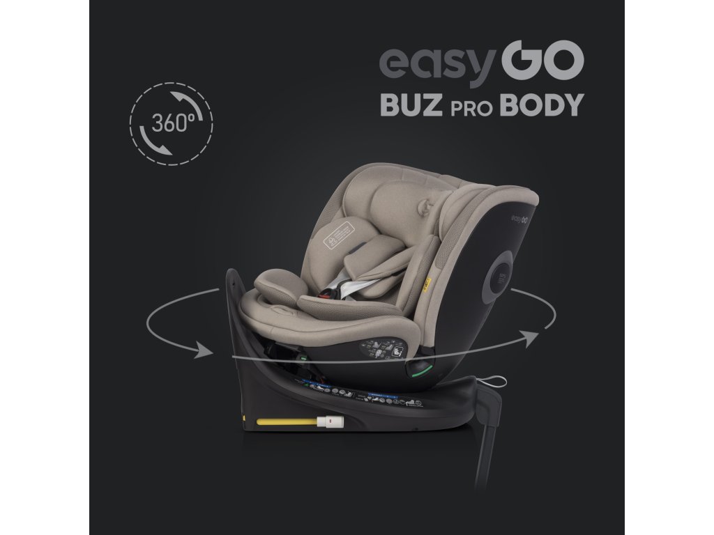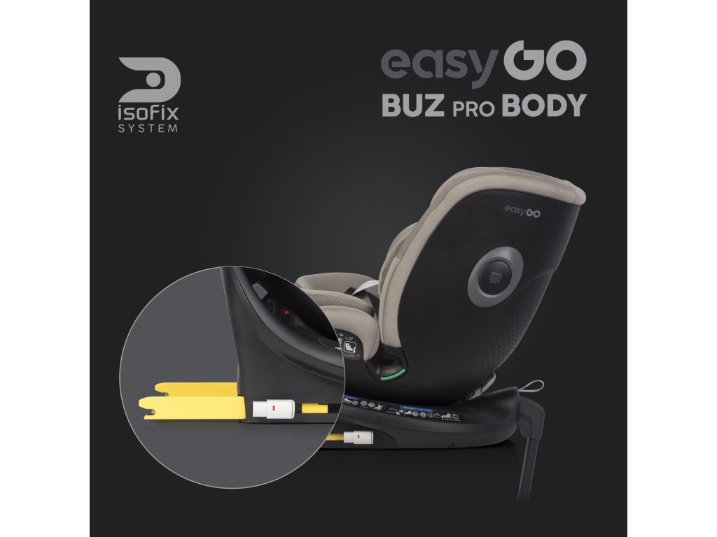 - Set 2 v 1: Buz Pro Body je navrhnutý ako doplnok k autosedačke EasyGo Buz Pro, čo umožňuje využitie jednej otočnej základne ISOFIX pre obe sedačky.