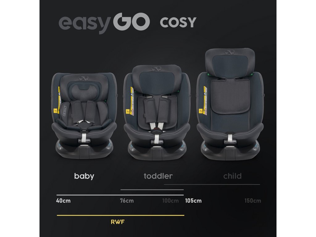 Predstavujeme vám autosedačku EasyGo Cosy, ktorá kombinuje bezpečnosť, komfort a štýl pre vaše dieťa od narodenia až po 36 kg. Táto autosedačka je určená pre deti s výškou od 40 do 150 cm a ponúka množstvo funkcií, ktoré zabezpečia pohodlné a bezpečné cestovanie.