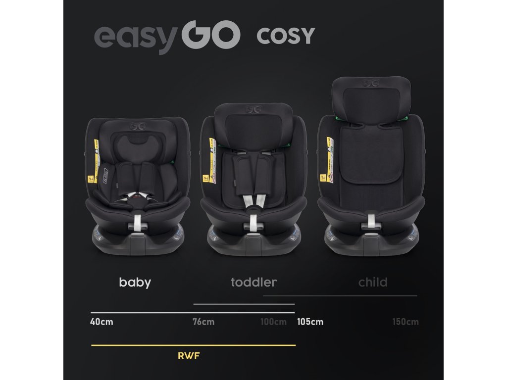 Predstavujeme vám autosedačku EasyGo Cosy, ktorá kombinuje bezpečnosť, komfort a štýl pre vaše dieťa od narodenia až po 36 kg. Táto autosedačka je určená pre deti s výškou od 40 do 150 cm a ponúka množstvo funkcií, ktoré zabezpečia pohodlné a bezpečné cestovanie.