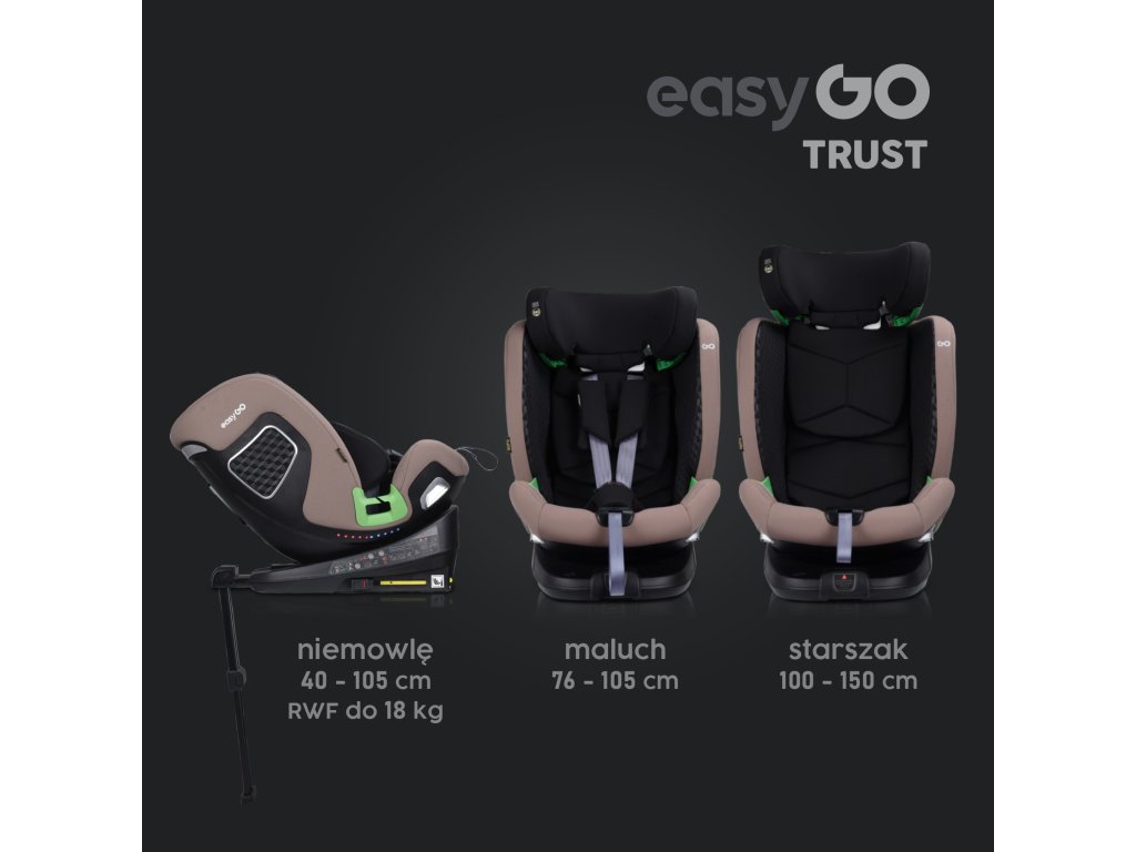 Autosedačka EasyGo Trust predstavuje novú generáciu produktov, ktoré spĺňajú najprísnejšie bezpečnostné normy ECE R129 I-SIZE. Táto autosedačka je určená pre deti s výškou od 40 do 150 cm (čo zodpovedá váhovému rozsahu 0-36 kg) a ponúka pokročilé funkcie na zaistenie maximálnej bezpečnosti a pohodlia počas jazdy.