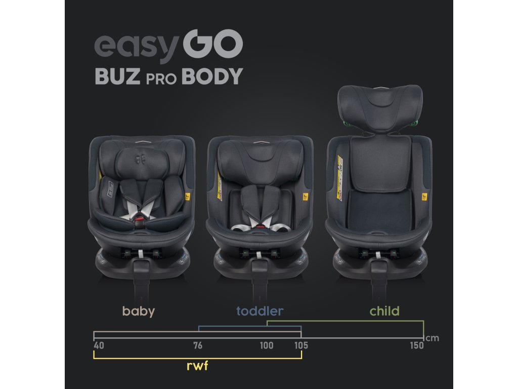 Vyberte si sadu autosedačiek EasyGo Buz Pro a Buz Pro Body, ktorá kombinuje bezpečnosť, komfort a štýl pre vaše najmenšie.