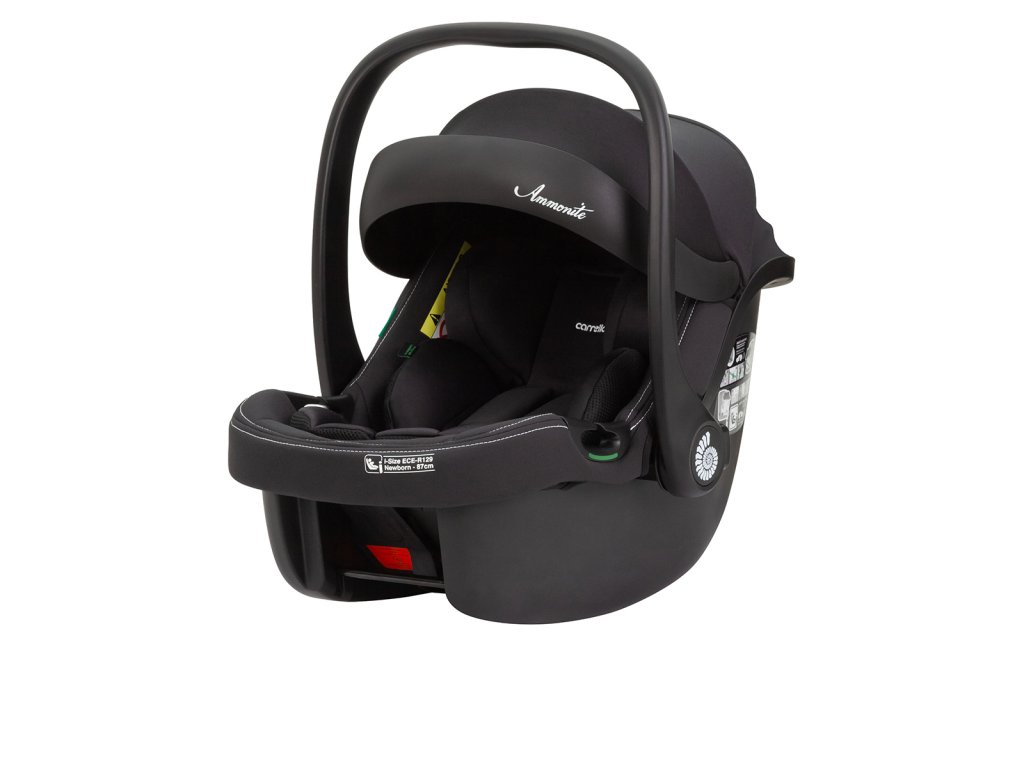 Autosedačka Ammonite Pokročilá autosedačka pre deti skupiny 0+ (40-87 cm). Je v súlade s najnovšou normou I-Size. Farba: Absolute Black Poťah nôh a kapucňa poskytujú dieťaťu väčšie pohodlie. Nastaviteľná rukoväť uľahčuje každodenné používanie a poskytuje dodatočnú ochranu pri inštalácii v aute. Opierka hlavy a ramenné popruhy sú nastaviteľné, aby zabezpečili pohodlné a správne používanie autosedačky podľa výšky dieťaťa. Všetky potrebné informácie a označenia pre správnu inštaláciu sú uvedené na tele autosedačky. Ak výška dieťaťa presahuje 75 cm, trojhranný anatomický vankúš a vložka by sa už nemali používať. Na upevnenie autosedačky použite trojbodový bezpečnostný pás. Autosedačku je možné nainštalovať na základňu ISOFIX s podpernou nohou. Poskytuje maximálnu ochranu dieťaťa. Základňa je v súlade s najnovšou normou I-SIZE a je vybavená systémom ISOFIX a podpornou nohou.Dodatočné parametre