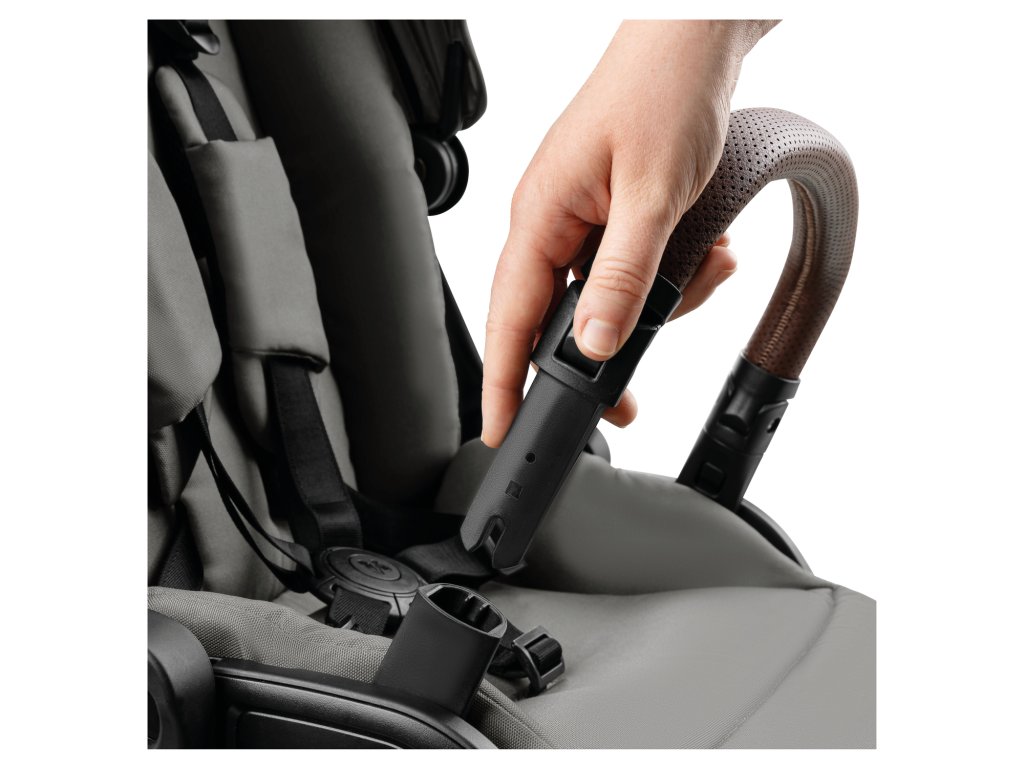 VŠETKO SO SEBOU - A PO RUKE // Vďaka praktickému držiaku na nápoje na výškovo nastaviteľnej teleskopickej rukoväti máte svoj nápoj vždy po ruke. Všetko, čo vy a vaše maličké budete potrebovať, sa zmestí do extra veľkého výklopného koša!