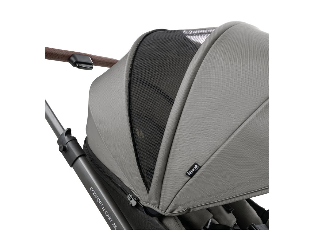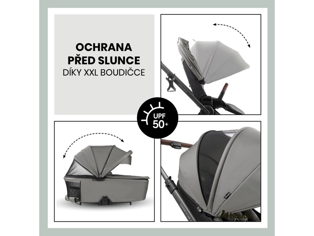 XL STRIEŠKA PRE MAXIMÁLNU OCHRANU PRED SLNKOM // Sedadlo aj vanička majú predĺžiteľnú slnečnú striešku s ochranou proti UV žiareniu 50+ a veľké sieťované okienka. Vďaka tomu je vaše dieťatko optimálne chránené a pritom má neustály prísun čerstvého vzduchu.