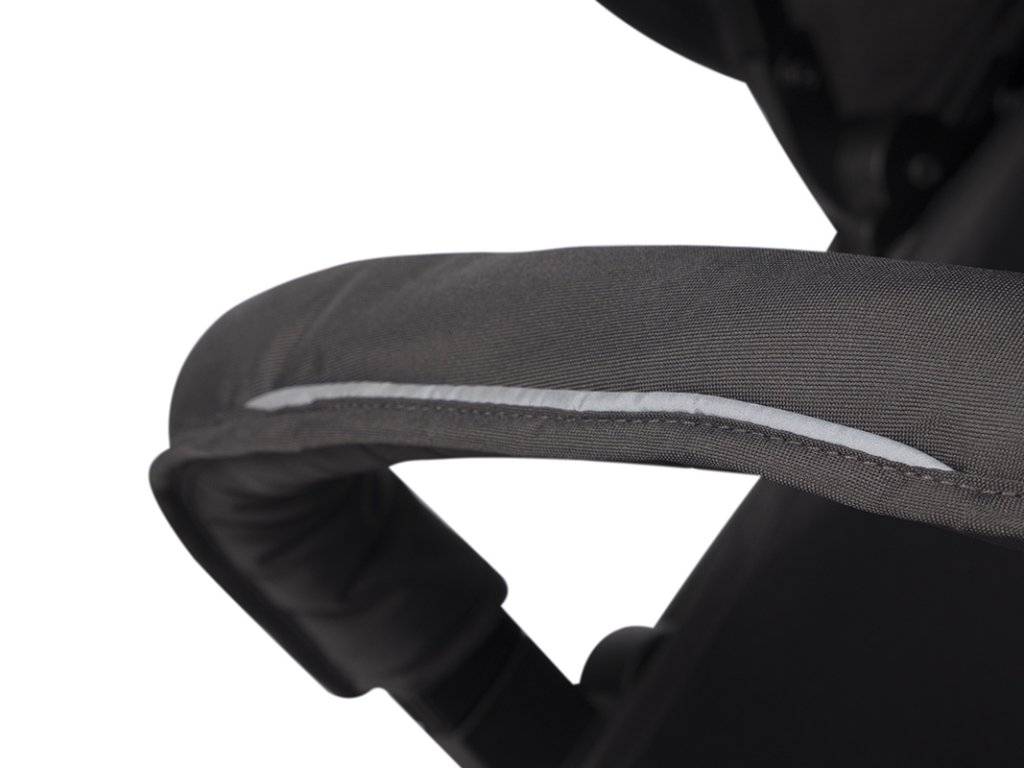 - Pohodlné sedadlo: Mäkké sedadlo je napnuté na ráme kočíka, čo zvyšuje komfort a eliminuje tvrdé plochy.