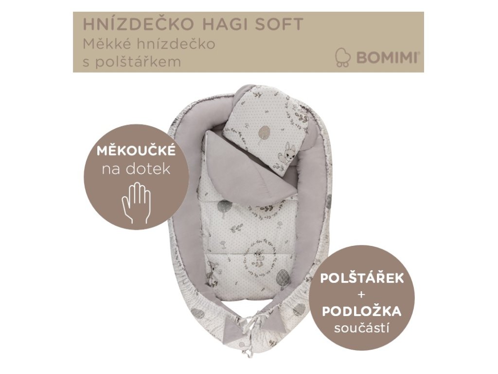 Bomimi HAGI Hniezdočko pre bábätko s vankúšom soft, KOLOUŠEK sivá