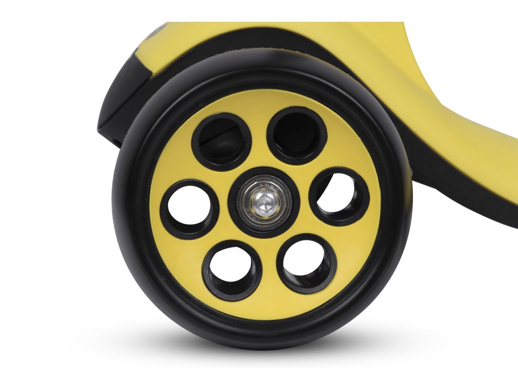 - Stabilné kolesá: Široké ložiskové kolesá z elastoméru polyuretánu sa neodchyľujú pod váhou dieťaťa a sú veľmi odolné proti opotrebeniu.