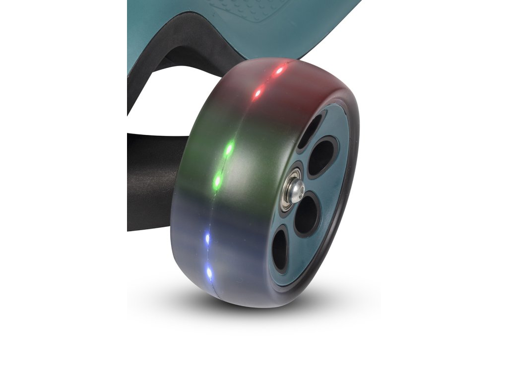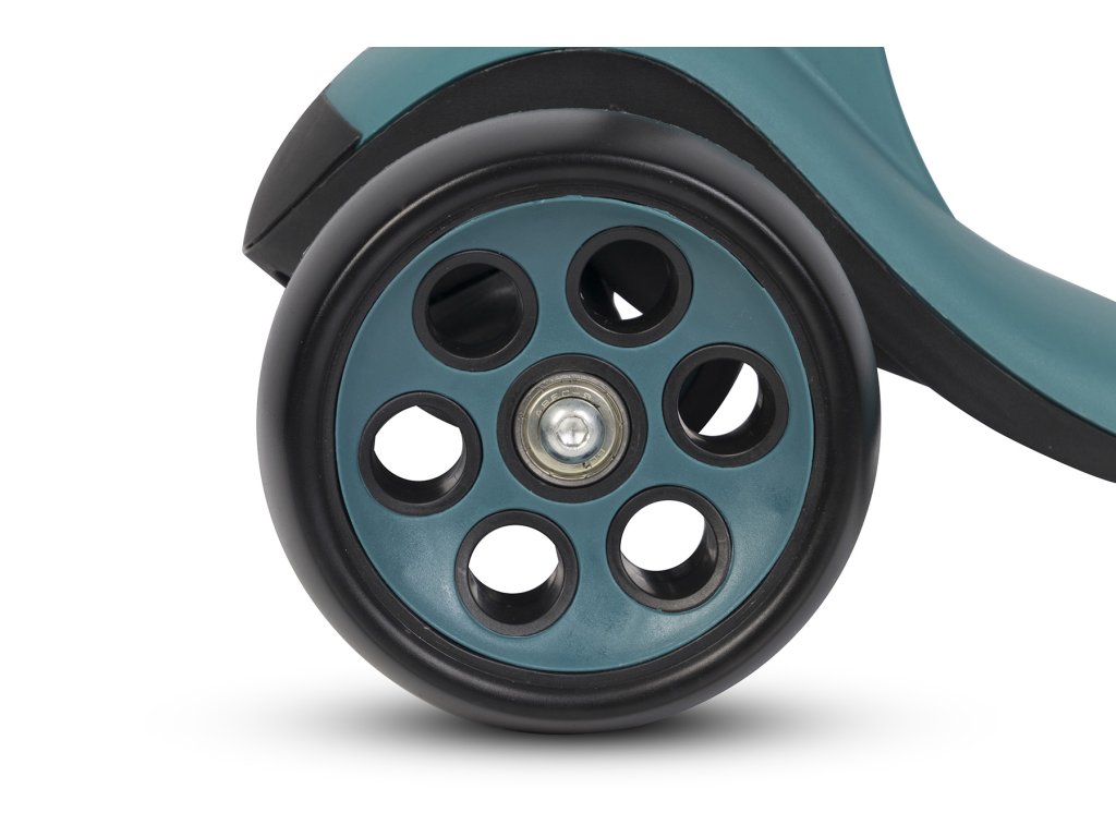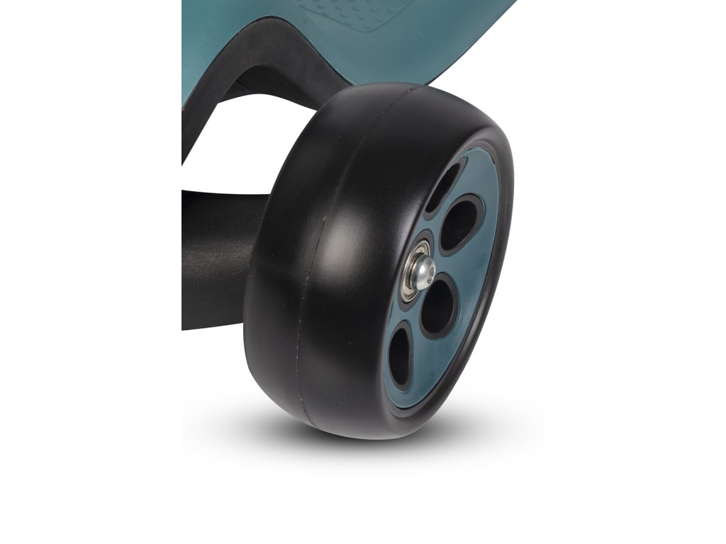 - Stabilné kolesá: Široké ložiskové kolesá z elastoméru polyuretánu sa neodchyľujú pod váhou dieťaťa a sú veľmi odolné proti opotrebeniu.