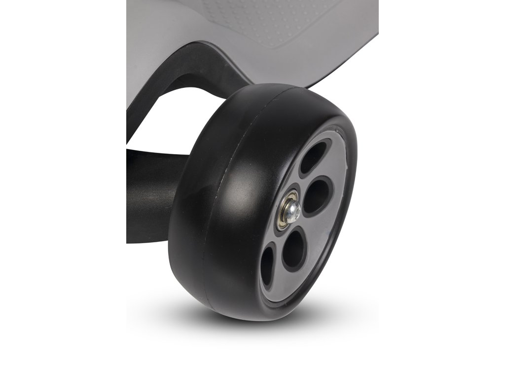 - Stabilné kolesá: Široké ložiskové kolesá z elastoméru polyuretánu sa neodchyľujú pod váhou dieťaťa a sú veľmi odolné proti opotrebeniu.