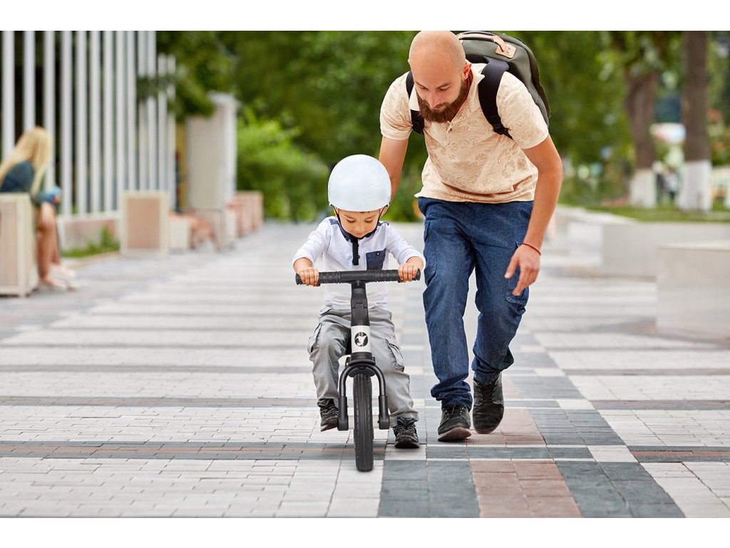 Trojkolesová jazda (1-2 roky): V tejto fáze sú pedále odstránené a zadné kolesá rozšírené, čo umožňuje dieťaťu bezpečne sa odrážať nohami.