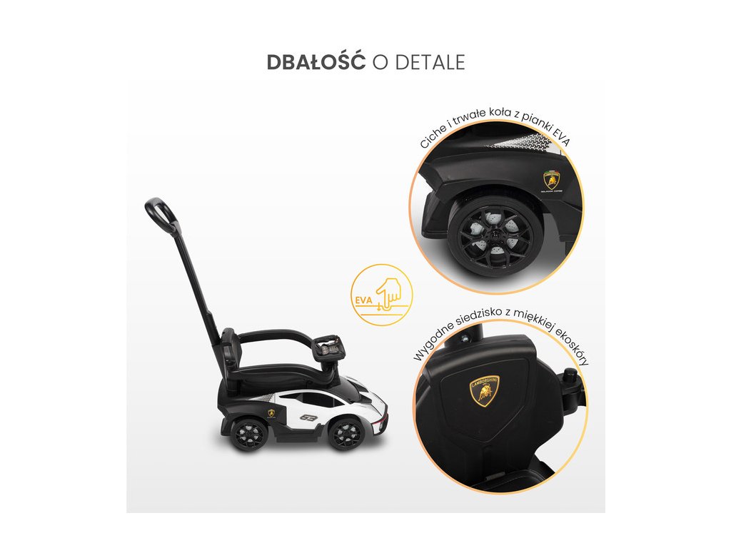 ŠPORTOVÝ DIZAJN PRE NAJMLADNEJŠÍCHLamborghini Essenza nie je len hračka na odrážanie – je to detská verzia automobilovej ikony. Agresívna línia karosérie, nízke sedadlo a jedinečný tvar volantu inšpirovaný originálom dávajú batoľaťu pocit, že je v skutočnom superaute. |