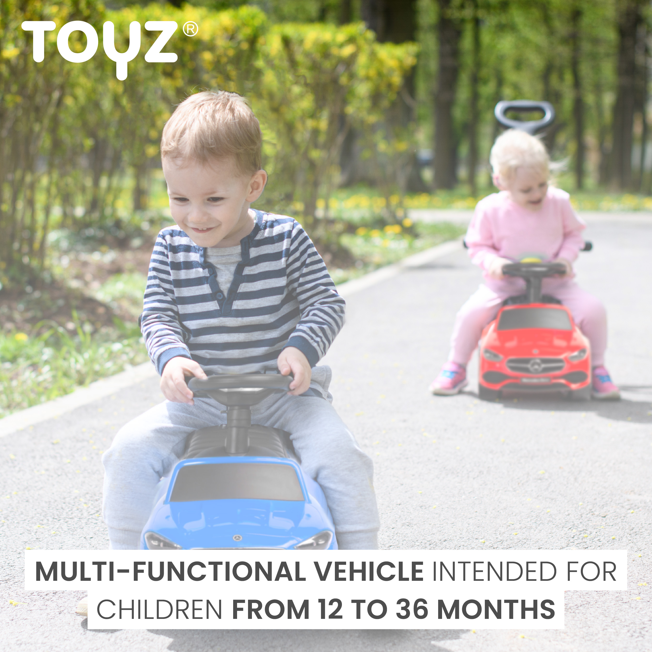 Odrážadlo Mercedes triedy C od Toyz je vozidlo, ktoré rastie s dieťaťom. Môže slúžiť ako odrážadlo, chodítko aj odrážadlo. Vďaka licencii značky Mercedes bol verne reprodukovaný jedinečný štýl modelu a jeho kvalita spracovania. Odrážadlo je ideálne na spoločné prechádzky. Dieťa sa môže pohybovať samostatne a keď je unavené, rodič ľahko prevezme kontrolu nad vozidlom. Výsuvné plošiny umožňujú bezpečnú oporu nôh a zábradlie chráni pred vypadnutím . Ďalšou atrakciou je volant s melódiami a klaksónom. Rodičia ocenia úložný priestor na hračky pod sedadlom. Technické údaje: Vekové rozpätie: 12-36 mesiacov Hmotnosť: 3,7 kg Rozmery: 83x40x92 cm (s rukoväťou)