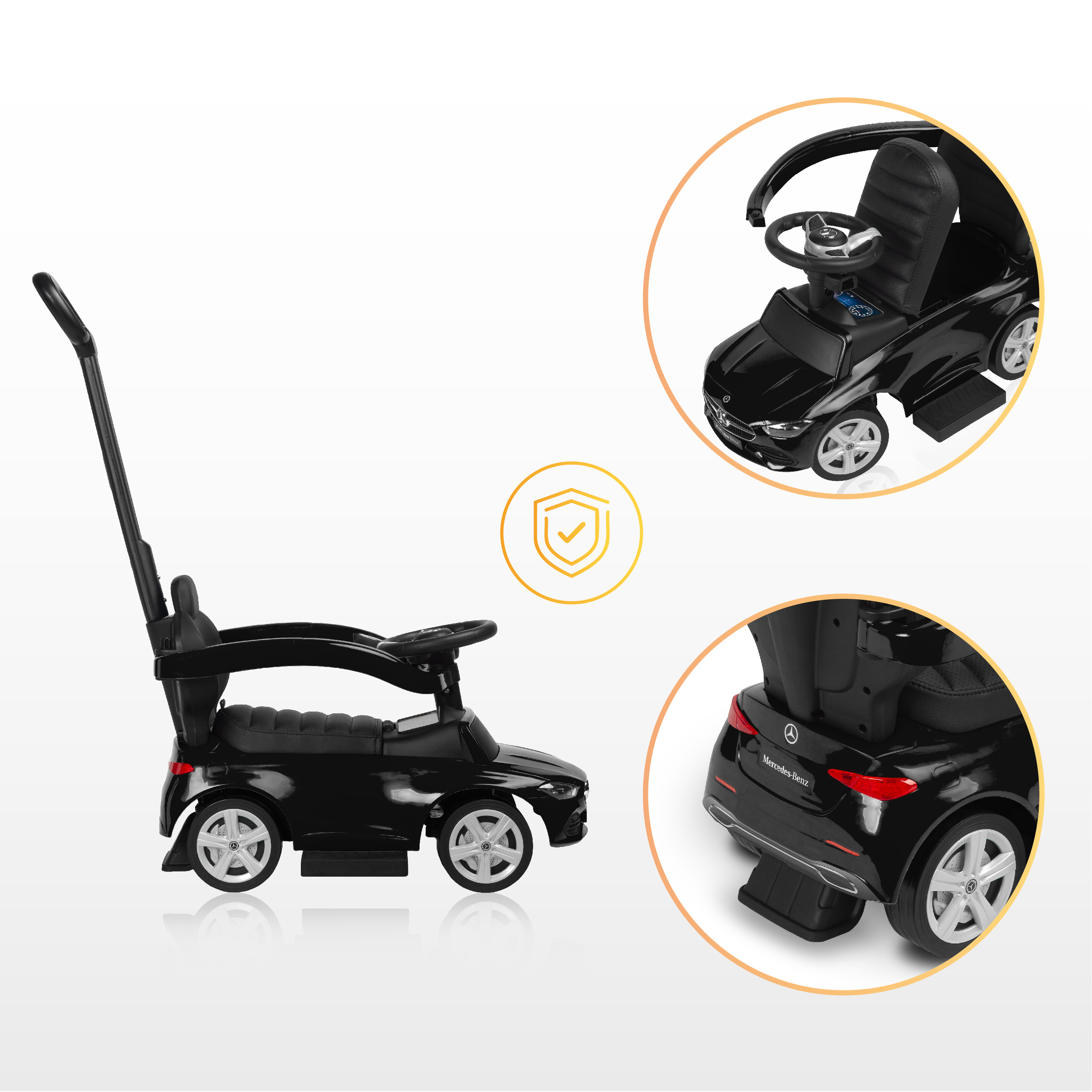 Odrážadlo Mercedes je štýlová a bezpečná hračka pre deti vo veku 12 až 36 mesiacov. Môže sa používať ako tlačidlo – s dohľadom rodiča, alebo po odstránení rukoväte a bezpečnostnej madla – ako klasické odrážadlo pre staršie deti.