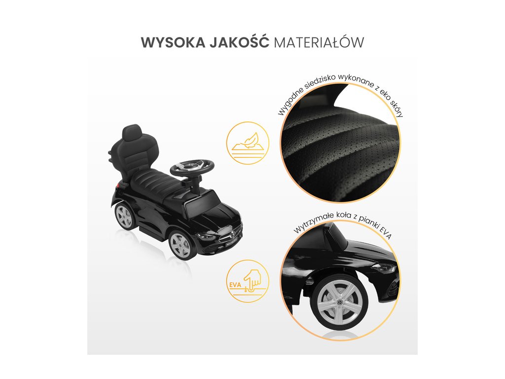 ATRAKTÍVNY DIZAJN PRE MALÝCH AUTOMOBILOVÝCH NADŠENCOVOdrážadlo, navrhnuté s ohľadom na najmenších, je inšpirované skutočnými vozidlami Mercedes. Ponúka pohodlie a radosť z jazdy. Realistické dizajnové prvky, ako je logo, charakteristický vzhľad a interaktívny volant, poskytujú deťom nezabudnuteľné chvíle. |