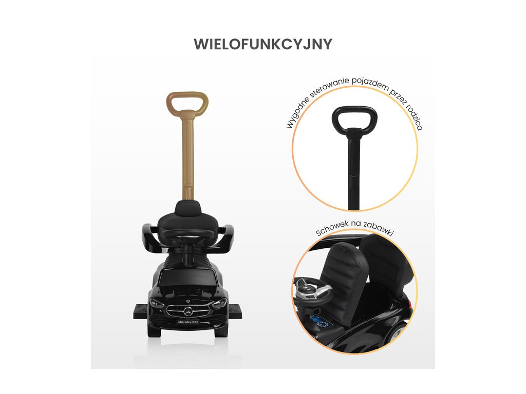 Odrážadlo Mercedes je štýlová a bezpečná hračka pre deti vo veku 12 až 36 mesiacov. Môže sa používať ako tlačidlo – s dohľadom rodiča, alebo po odstránení rukoväte a bezpečnostnej madla – ako klasické odrážadlo pre staršie deti.