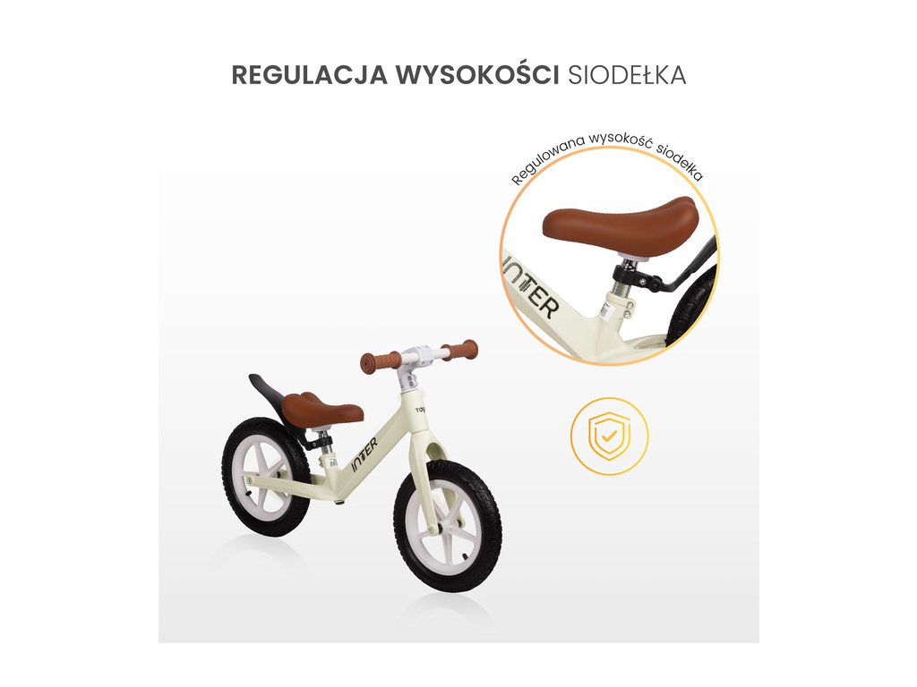 Možnosť nastavenia výšky sedadla umožňuje bicyklu rásť s dieťaťom. Toto plynulé nastavenie zaisťuje pohodlie a udržiava správnu polohu dieťaťa počas celého používania. Vďaka tomu sa odrážadlo Inter Balance Bike stáva dlhodobou investíciou!