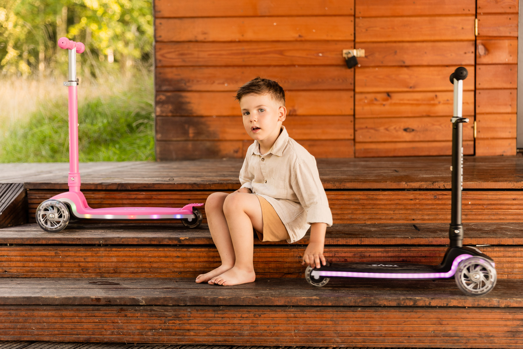 Pre ešte väčšiu zábavu z jazdy je kolobežka vybavená svietiacimi kolesami, ktoré sa pri pohybe blikajú, a LED pásikom napájaným z batérie. Tieto farebné svetelné efekty nielen zvyšujú viditeľnosť a bezpečnosť dieťaťa, ale prinášajú aj vzrušenie z každej jazdy.