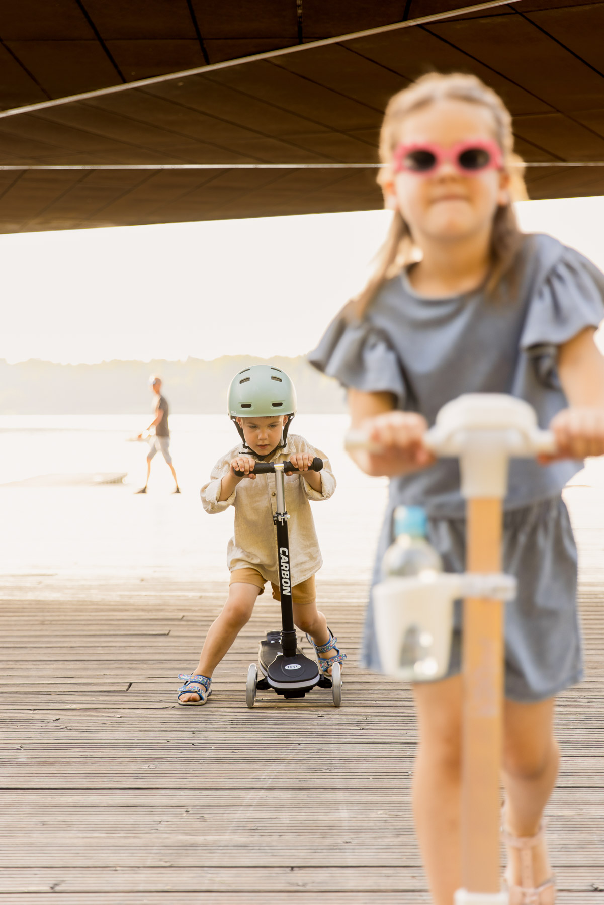 Kolobežka Carbon je skvelou voľbou pre deti od 3 rokov. Má 3-úrovňové nastaviteľné riadidlá, ktoré umožňujú nastavenie výšky podľa veľkosti dieťaťa. To podporuje ergonomickú polohu pri jazde a predlžuje životnosť kolobežky.