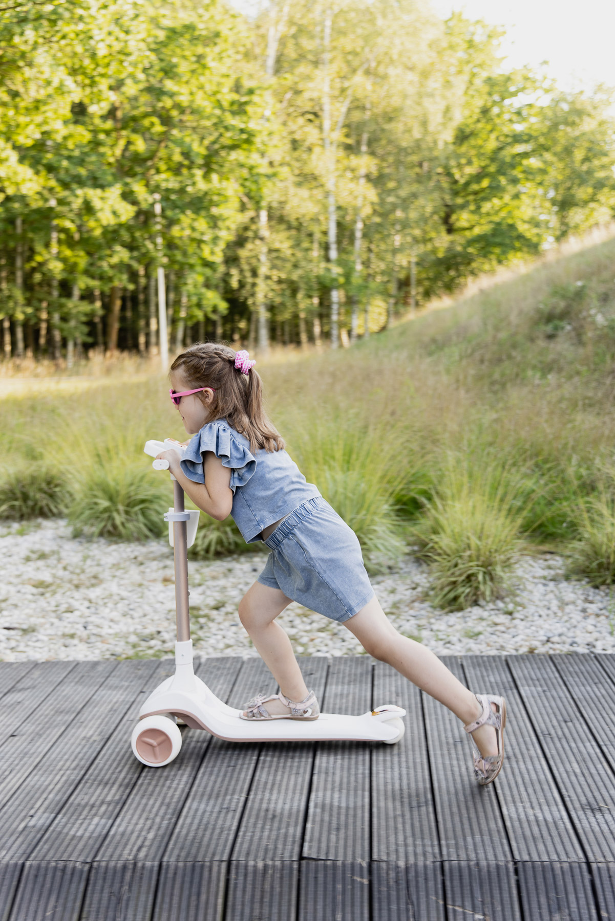 Doprajte svojmu dieťaťu plnú kontrolu a radosť z jazdy na kolobežke, ktorá umožňuje riadenie s vyvážením tela! Toto je ideálne riešenie pre malé deti, ktoré sa ešte len učia motorickú koordináciu – zákruty sú prirodzené a plynulé bez nutnosti používať riadidlá.