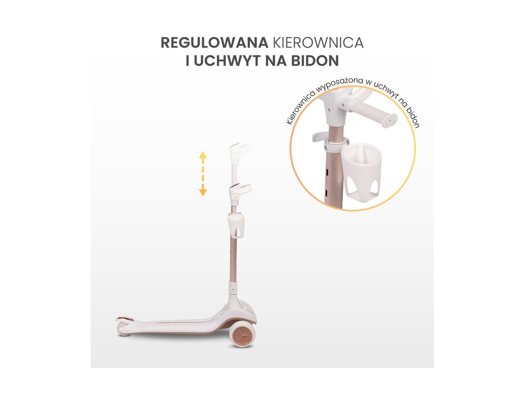 Vďaka 5-úrovňovej nastaviteľnej riadidlám kolobežka rastie s vaším dieťaťom a poskytuje dlhotrvajúce pohodlie. Maximálna výška riadidiel je 98,5 cm. Kolobežka obsahuje držiak na fľašu, ktorý deťom umožňuje ľahký prístup k nápoju počas dlhých jázd. Je to perfektné riešenie pre malých objaviteľov, ktorí si cenia čas strávený vonku a udržiavanie hydratácie.