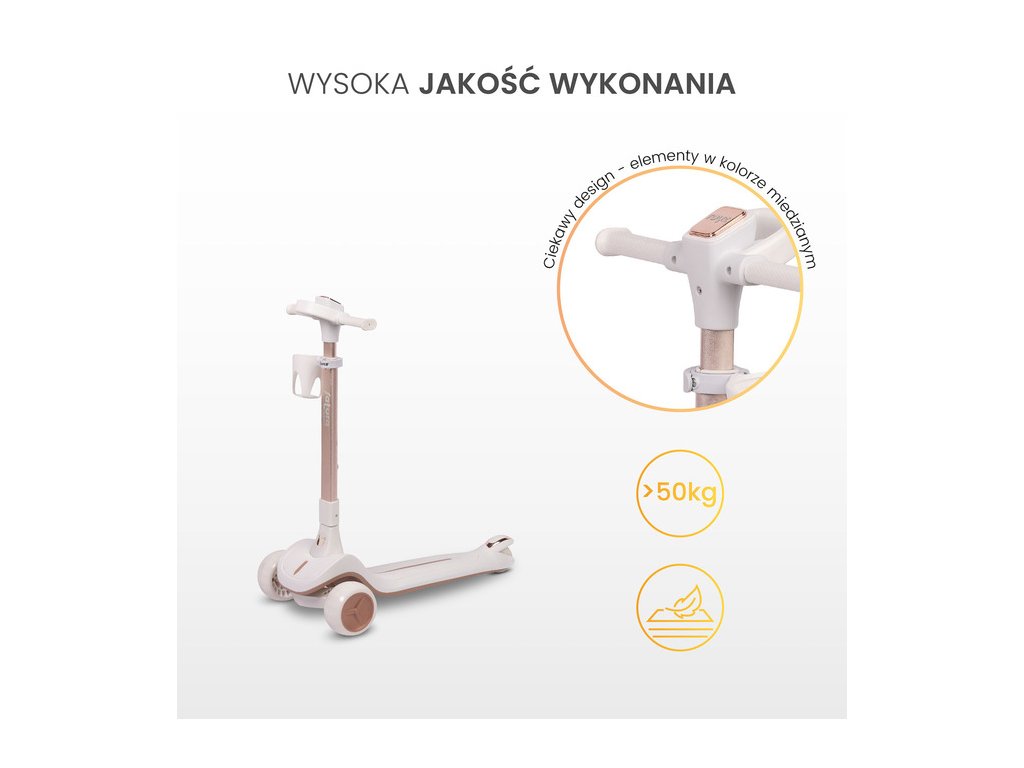 S ohľadom na najmladších používateľov je kolobežka vyrobená s ľahkou konštrukciou, ktorá deťom uľahčuje manévrovanie a prenášanie. Systém rýchleho skladania umožňuje zložiť kolobežku jedným pohybom, vďaka čomu je ideálnym riešením pre častých cestovateľov.
