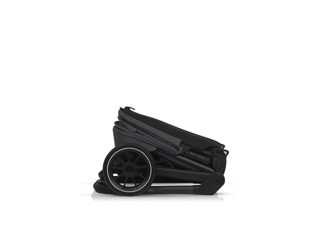- Jednoduché skladanie: Kočík sa dá zložiť jednou rukou, aj so sedadlom v oboch smeroch. Po zložení stojí vo zvislej polohe a je vybavený praktickým úchytom pre ľahké prenášanie.