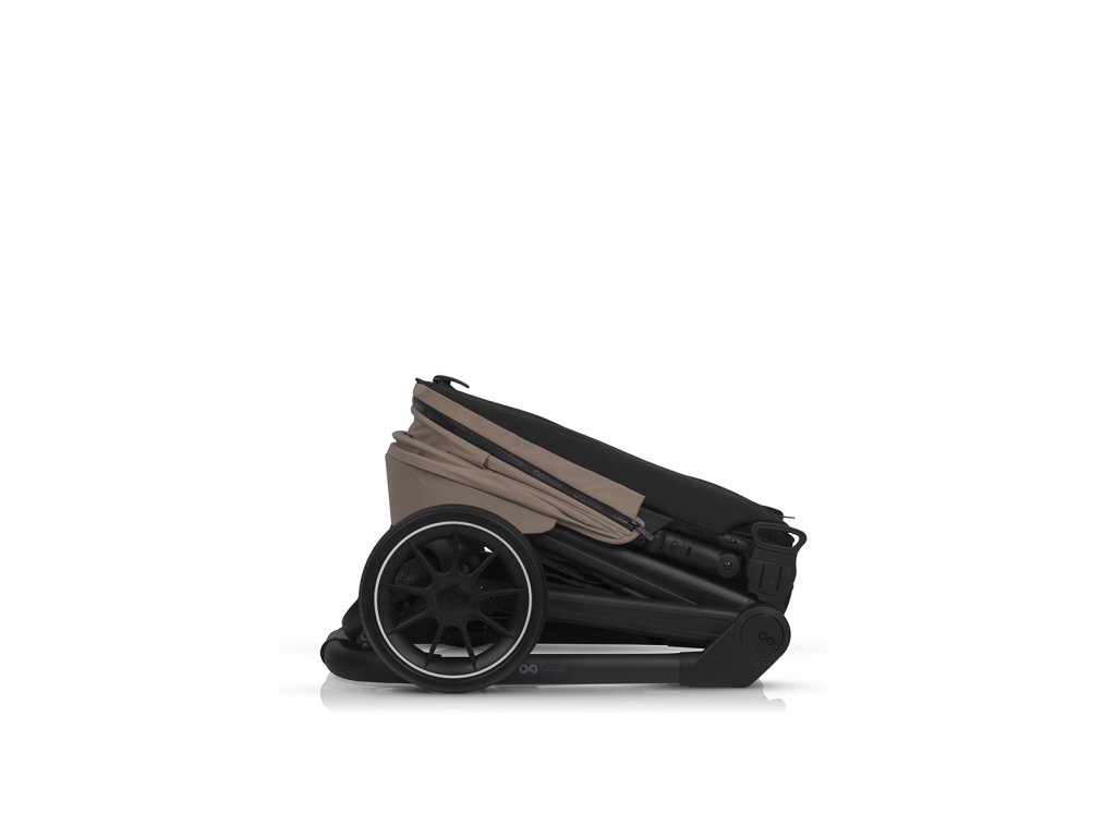 - Jednoduché skladanie: Kočík sa dá zložiť jednou rukou, aj so sedadlom v oboch smeroch. Po zložení stojí vo zvislej polohe a je vybavený praktickým úchytom pre ľahké prenášanie.