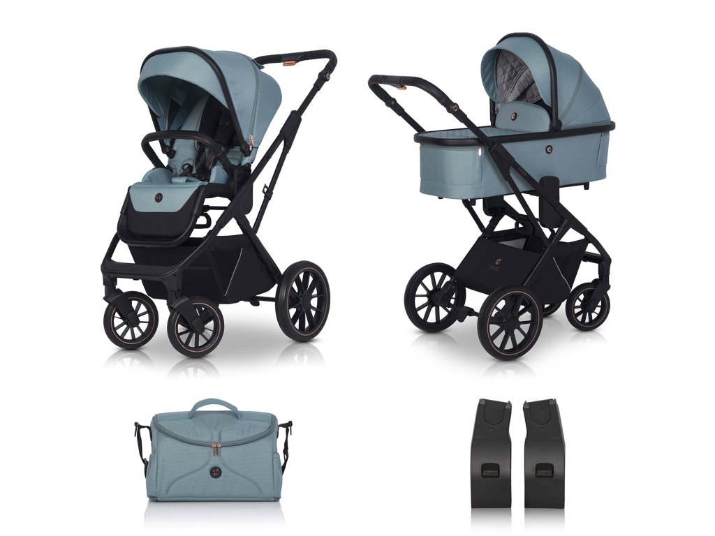 - Sada 2v1: Obsahuje športový kočík, hlbokú vaničku, tašku a univerzálne adaptéry pre autosedačky.