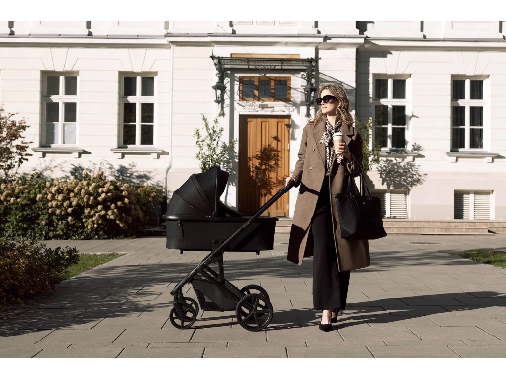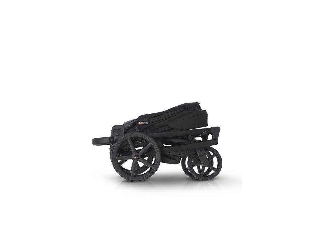Teleskopický skladací systém: Umožňuje jednoduché skladanie jednou rukou, a to aj so sedadlom namontovaným v oboch smeroch. Po zložení kočík stojí na všetkých kolesách, čo zaručuje čistotu a jednoduchú manipuláciu.