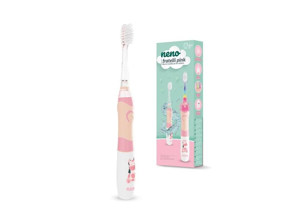 Neno Fratelli je elektrická zubná kefka určená pre staršie detičky (od 6 rokov). Neno Fratelli je vybavená časovačom a nylonovými štetinami, ktoré zabezpečujú správnu ústnu hygienu. Navyše vďaka inovatívnym funkciám, ako je LED podsvietenie a farebné LED diódy sa každodenné čistenie zúbkov stane pre vaše dieťa dobrodružstvom. Pomôže vám rozvíjať zdravé návyky ústnej hygieny u dieťaťa a zatraktívni každodenný rituál. Správna technika je nevyhnutná na účinné čistenie zúbkov, a to aj u detí. Skôr než začnete učiť svoje dieťatko, uistite sa, že viete, ako si má čistiť zuby podľa veku a vývoja zúbkov. Ďalším faktorom kvality je dobrý výkon. S kefkou Neno Fratelli si môžete byť istí, že čistenie bude precízne, pretože produkuje 24 000 vibrácií za minútu.
