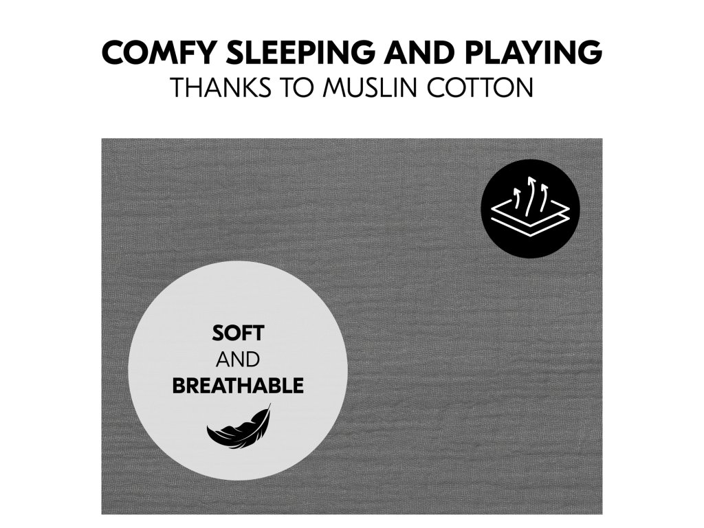 PRE POHODLNÝ SPÁNOK VĎAKA MÄKKÉMU MUŠLÍNU // Prestieradlo je vyrobené z príjemného, priedušného mušelínu. Mäkký mušelín udržiava dieťa v pohodlí vo všetkých ročných obdobiach: v teple, keď je chladno, a v chlade, keď je teplo.
