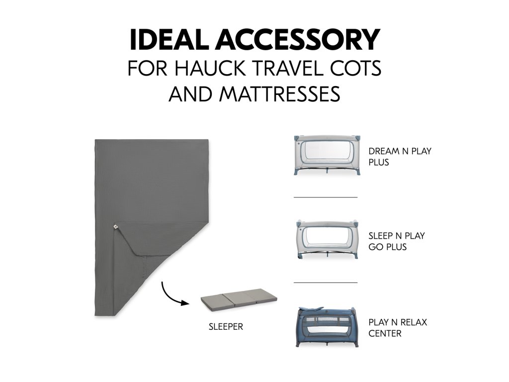 IDEÁLNE PRÍSLUŠENSTVO K CESTOVNÝM POSTELIČKÁM HAUCK // Spolu s praktickým cestovným matracom tvorí dokonalý doplnok k cestovným postieľkam HAUCK, ako sú Play N Relax Center, Sleep N Play Go Plus alebo cestovná postieľka Dream N Play Plus.