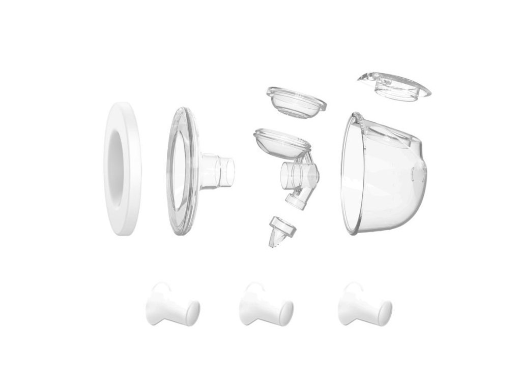 - Sada so 7 veľkosťami redukcií prsníkových štítov – štyri pre fľašky (15, 17, 19, 22 mm) a tri pre zberné nádoby (17, 19, 21 mm) pre maximálny komfort a účinnosť