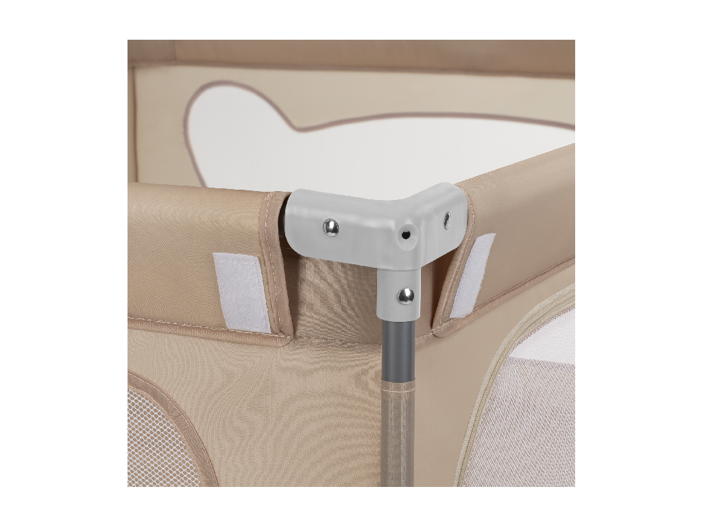 Bezpečnosť je na prvom mieste. Horná časť zábradlia je chránená dvojitou tkaninou a mäkkou penou, ktorá tlmí prípadné nárazy. Všetky pevné časti konštrukcie sú umiestnené na vonkajšej strane ohrádky, takže vnútri nenájdete žiadne vyčnievajúce časti, o ktoré by sa dieťa mohlo zraniť. Môžete si byť istí, že vaše dieťatko sa hrá v bezpečnom a premyslenom priestore.