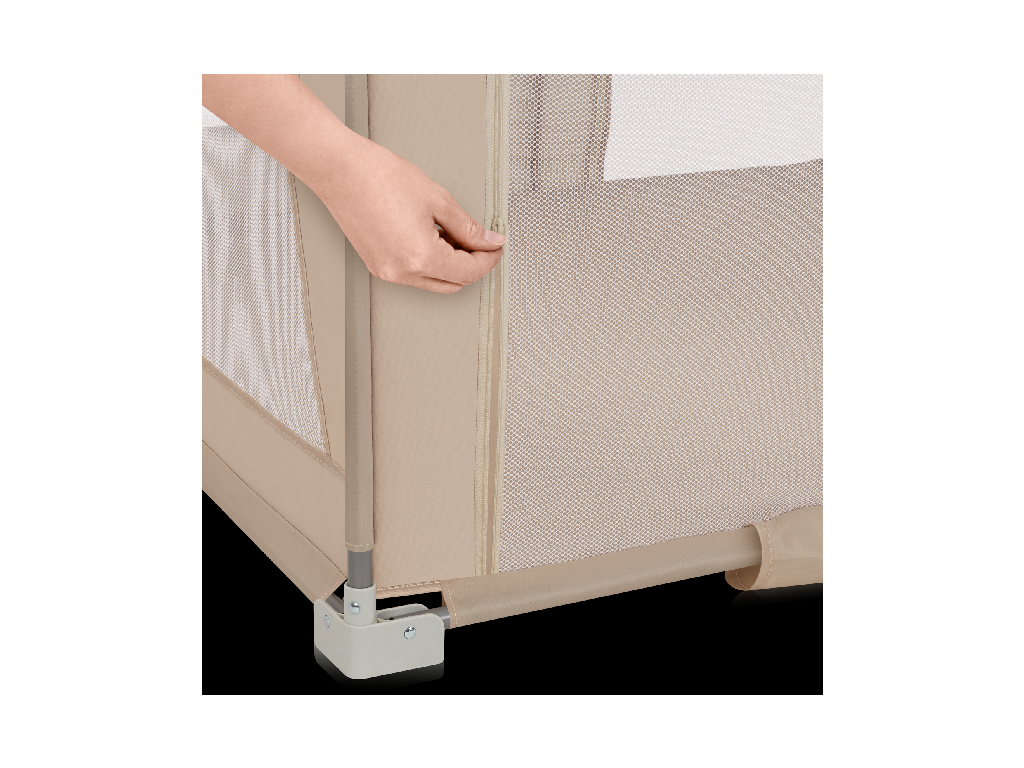 Ohrádka je vybavená dvoma bočnými vchodmi so zipsami, ktoré umožňujú dieťaťu pohodlne vstupovať a vystupovať. Zámky sa ľahko zapínajú a zabezpečujú bezpečný priestor na hru a oddych. Vy ako rodič máte pritom vždy prehľad o tom, čo sa vnútri deje, a dieťatko sa samo nedostane von bez vášho vedomia.