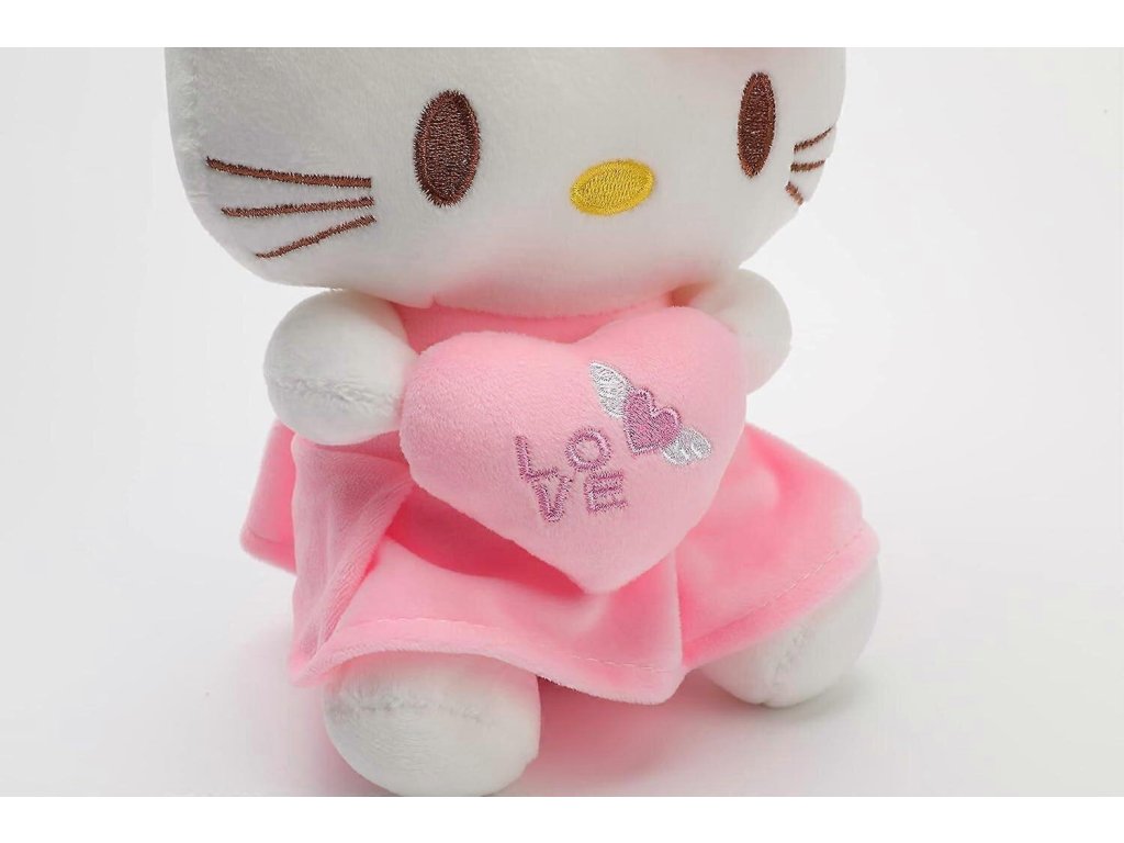 Hračka je vyrobená z kvalitného a hebkého plyšu, ktorý je príjemný na dotyk. Výplň tvorí jemné duté vlákno, ktoré zabezpečuje mäkkosť aj pri dlhšom používaní. Vďaka precíznemu spracovaniu a pevnému šitiu je vhodná na hranie, ale aj ako dekorácia do detskej izby. Typická mašlička na uchu a výšivky srdiečok na nôžkach dodávajú hračke nežný vzhľad a zároveň odkazujú na lásku a priateľstvo, ktoré Hello Kitty symbolizuje. Výrazná, no jemná ružová farebnosť poteší najmä malé slečny.