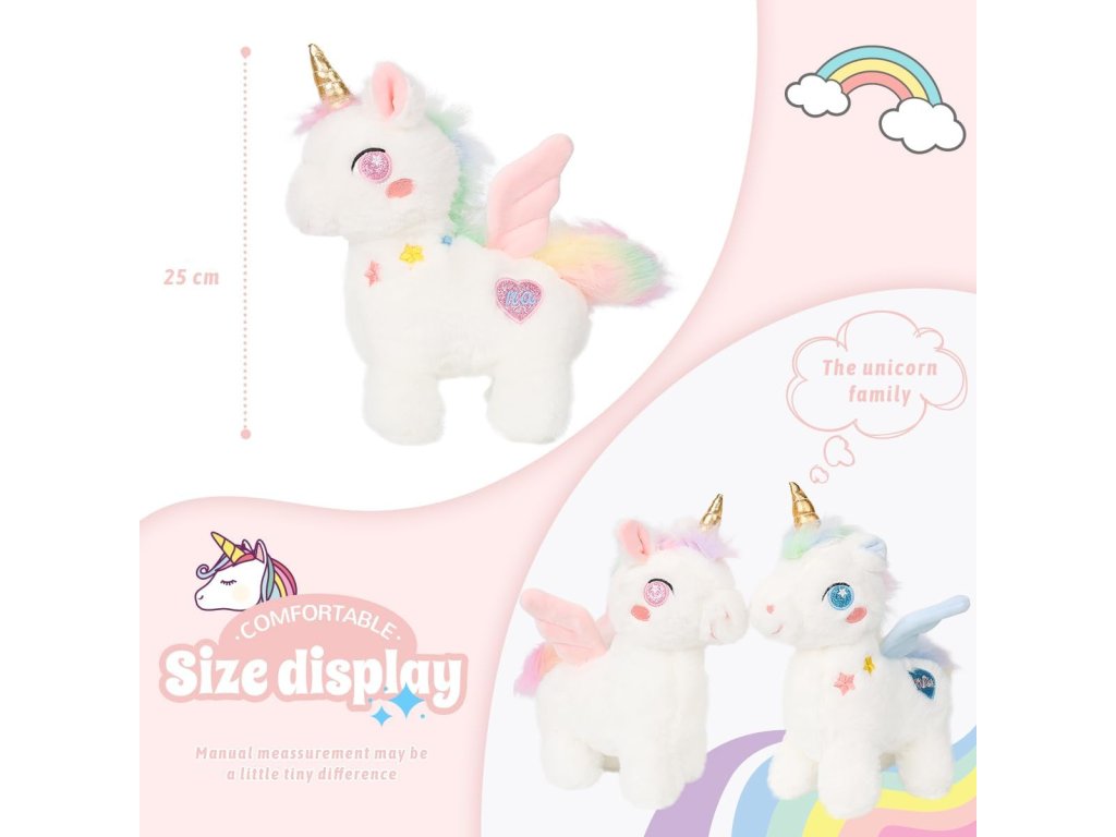 Táto kúzelná plyšová hračka v tvare jednorožca s veľkosťou 25 cm je snom každého malého milovníka rozprávok.