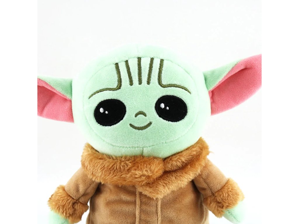 Vďaka svojej roztomilej tváričke a veľkým očiam vyzerá táto plyšová hračka verne ako postava z populárneho seriálu „Mandalorian“. Je oblečený do svojho typického hnedého kabátika s kožušinovým golierom a manžetami, čo podčiarkuje jeho jedinečný vzhľad. Ružové vnútro uší a zelený odtieň pleti robia z tejto hračky autentickú verziu Baby Yody, ktorú si obľúbi každý fanúšik.