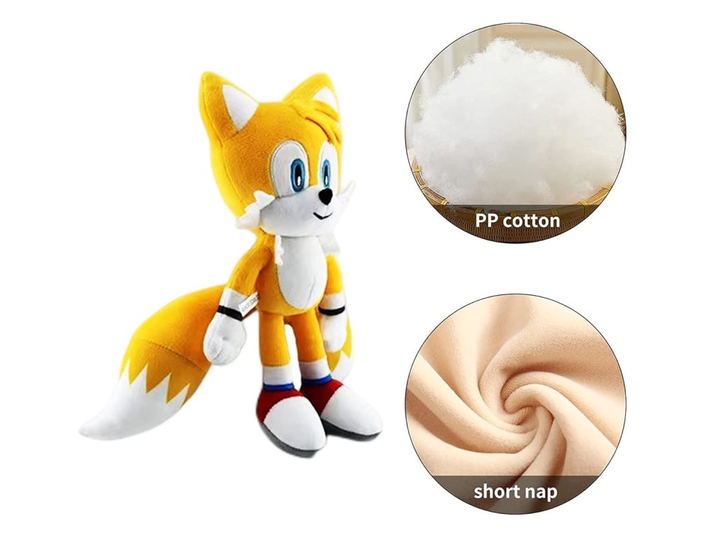 Hračka je vyrobená z hebkého plyšu, ktorý je príjemný na dotyk a vhodný aj pre menšie deti. Výplň z mäkkého polyesteru zabezpečuje, že je Tails ideálny na mojkanie, ale aj dostatočne pevný na bežné hranie. Kvalitné šitie a detailné spracovanie zaručujú dlhú životnosť aj pri častom používaní.
