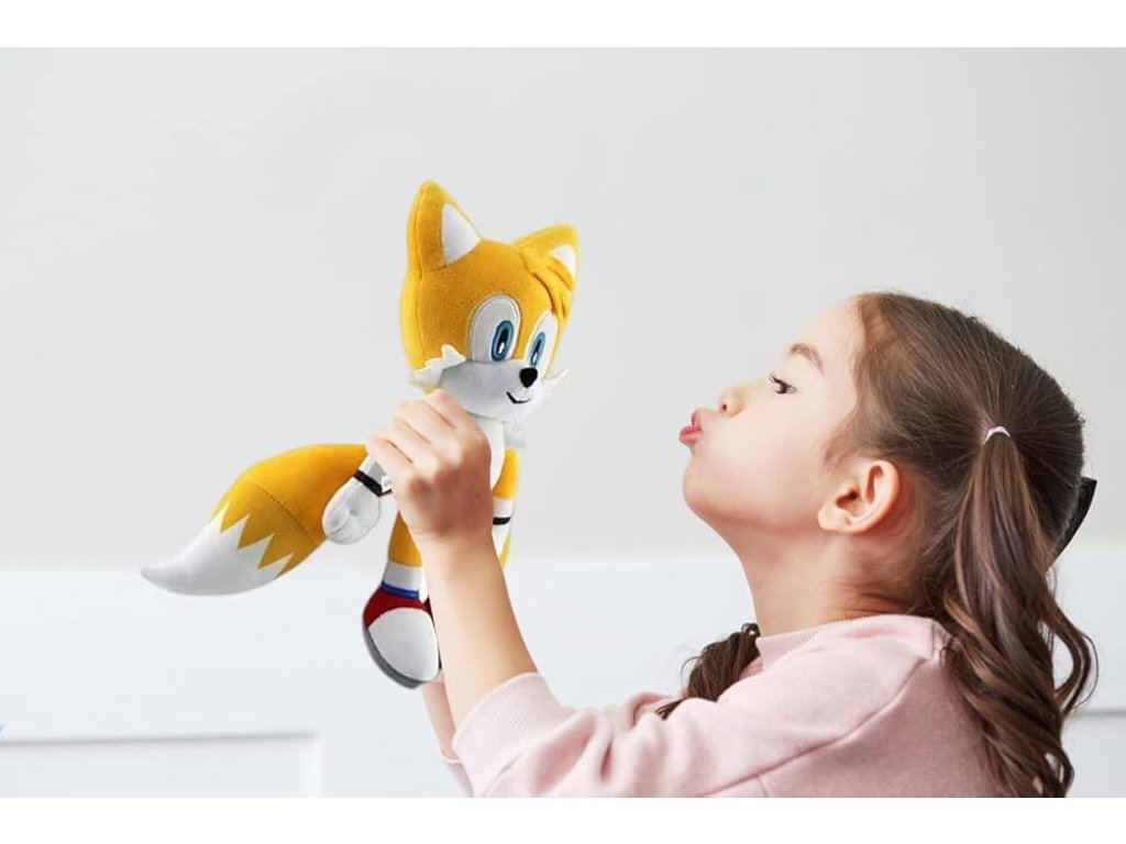Tails, známy aj ako Miles „Tails“ Prower, je verný kamarát modrého ježka Sonica a vyniká svojimi dvoma chvostami, ktoré mu umožňujú lietať. Táto hračka zachytáva jeho typický výraz, veľké modré oči a žlto-bielu srsť, čím verne odráža jeho vzhľad zo sveta videohier Sonic.