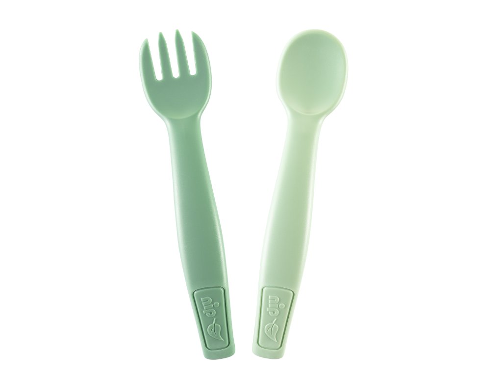 Súprava sa skladá z lyžice a vidličky a je ideálna pre deti od približne 9 mesiacov. Lyžica má extra plochý tvar, ideálny pre malé detské ústa, vďaka čomu môžu ľahko vyprázdniť lyžicu až do poslednej kvapky. Príbory sú k dispozícii v krásnych prírodných farbách.