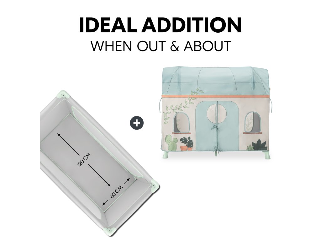 IDEÁLNY DOPLNOK NA CESTY // Perfektne ladí s cestovnými postieľkami Hauck, s úložnou plochou so šírkou do 60 cm: pomocou krásneho stanu môžete svoju Hauck cestovnú postieľku zmeniť na kúzelný palác alebo malé kvetinárstvo.