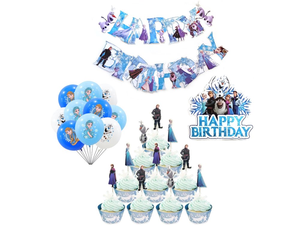 Dizajn inšpirovaný postavami ako Elsa, Anna a Olaf prinesie na oslavu čarovnú atmosféru plnú snehových vločiek a zimnej mágie. Farebné prevedenie v odtieňoch modrej a bielej krásne vynikne v každom interiéri.