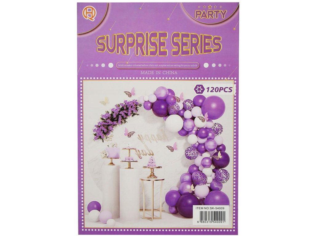 Veľká sada balónikov na girlande fialovo-čierno-biela 120 ks